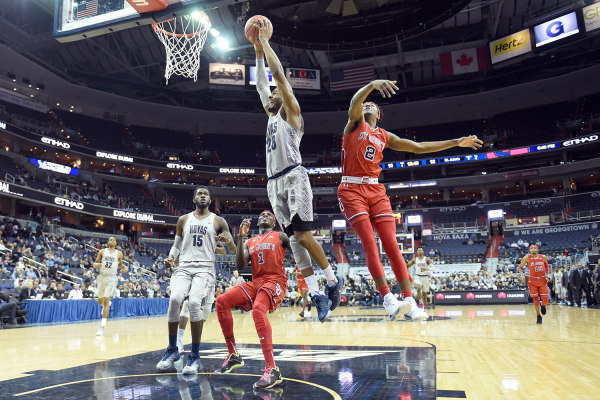 Georgetown went into halftime with a 44-37 lead. The Hoyas ran away with the game when they went on a 19-2 run during the opening minutes of the second half.