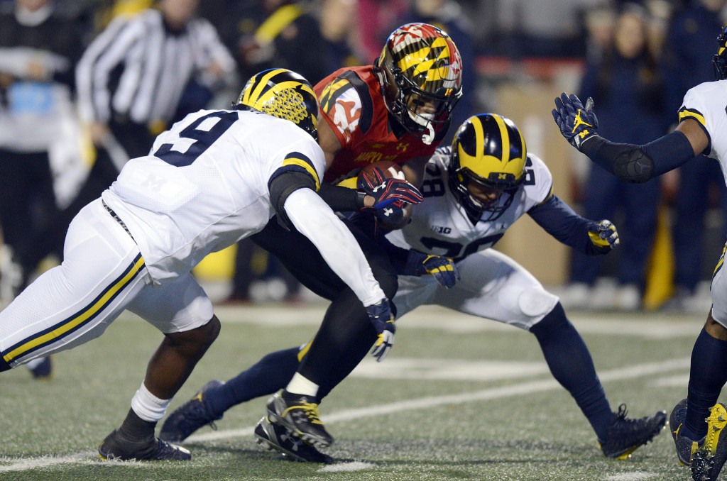 Running back Chris Evans, who finished with 90 rushing yards and two touchdowns on 15 carries, ran one-yard into the end zone. Maryland was called for illegal motion after recovering a fumble on a punt, which led to Michigan quarterback Brandon Peters’ 33-yard touchdown pass to Zach Gentry.